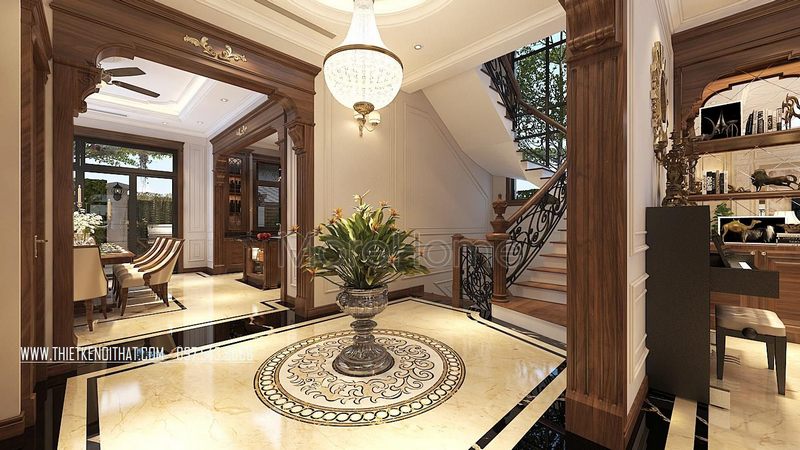 Cầu thang xoắn gỗ tự nhiên kết hợp sắt tinh tế được sử dụng để nối giữa các tầng của biệt thự và nhà phố.